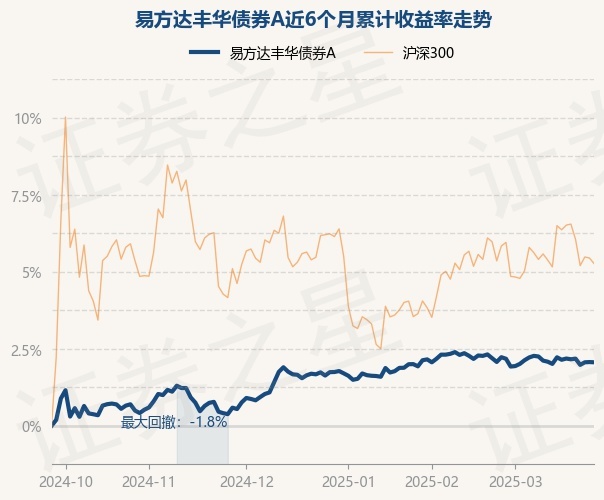 证券之星消息,3月26日,易方达丰华债券A最新单位净值为1.3212元,累计净值为1.5356元,较前一交易日下跌0.02%。历史数据显示该基金近1个月下跌0.32%,近3个月上涨0.62%,近6个月上涨4.12%,近1年上涨4.97%。该基金近6个月的累计收益率走势如下图: