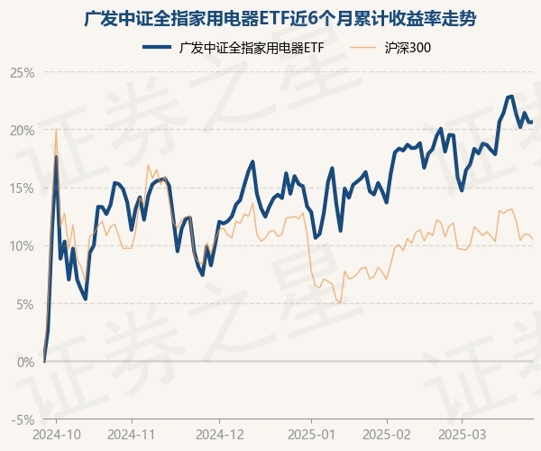 证券之星消息,3月26日,广发中证全指家用电器ETF最新单位净值为1.4699元,累计净值为1.4699元,较前一交易日上涨0.0%。历史数据显示该基金近1个月上涨0.73%,近3个月上涨3.82%,近6个月上涨20.39%,近1年上涨28.81%。该基金近6个月的累计收益率走势如下图: