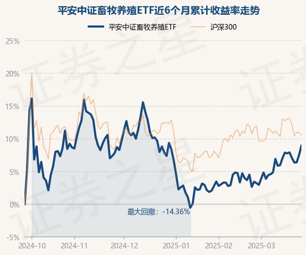 证券之星消息,3月26日,平安中证畜牧养殖ETF最新单位净值为0.6158元,累计净值为0.6158元,较前一交易日上涨1.35%。历史数据显示该基金近1个月上涨5.32%,近3个月上涨1.47%,近6个月上涨8.91%,近1年下跌5.44%。该基金近6个月的累计收益率走势如下图: