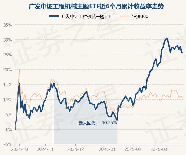 证券之星消息,3月26日,广发中证工程机械主题ETF最新单位净值为1.3733元,累计净值为1.3733元,较前一交易日上涨0.0%。历史数据显示该基金近1个月上涨2.45%,近3个月上涨15.18%,近6个月上涨25.58%,近1年上涨26.65%。该基金近6个月的累计收益率走势如下图: