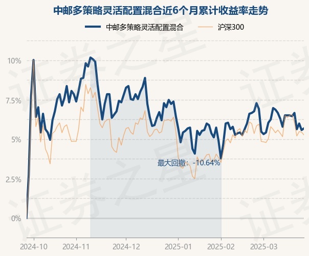 证券之星消息,3月26日,中邮多策略灵活配置混合最新单位净值为1.078元,累计净值为1.499元,较前一交易日上涨0.19%。历史数据显示该基金近1个月下跌2.8%,近3个月下跌3.14%,近6个月上涨11.36%,近1年下跌3.42%。该基金近6个月的累计收益率走势如下图: