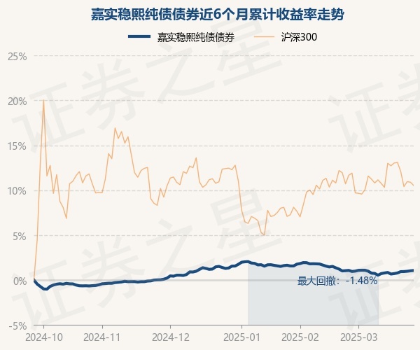 证券之星消息,3月26日,嘉实稳熙纯债债券最新单位净值为1.0219元,累计净值为1.2993元,较前一交易日上涨0.04%。历史数据显示该基金近1个月下跌0.01%,近3个月下跌0.27%,近6个月上涨3.07%,近1年上涨3.8%。该基金近6个月的累计收益率走势如下图: