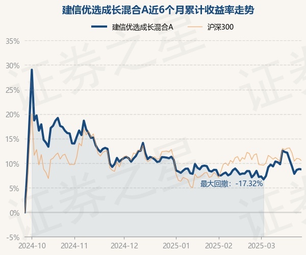 证券之星消息,3月26日,建信优选成长混合A最新单位净值为2.247元,累计净值为4.192元,较前一交易日下跌0.06%。历史数据显示该基金近1个月上涨1.03%,近3个月下跌2.15%,近6个月上涨8.74%,近1年下跌0.56%。该基金近6个月的累计收益率走势如下图: