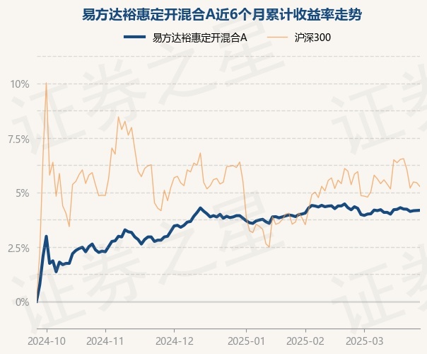 证券之星消息,3月26日,易方达裕惠定开混合A最新单位净值为1.7606元,累计净值为2.5186元,较前一交易日上涨0.02%。历史数据显示该基金近1个月下跌0.3%,近3个月上涨0.57%,近6个月上涨8.37%,近1年上涨10.32%。该基金近6个月的累计收益率走势如下图: