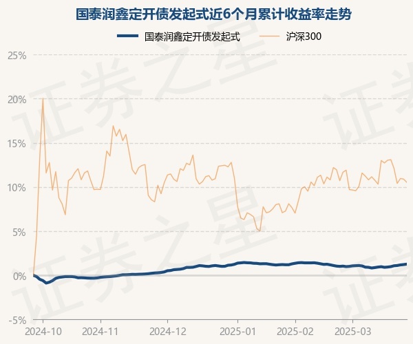 证券之星消息,3月26日,国泰润鑫定开债发起式最新单位净值为1.0435元,累计净值为1.3324元,较前一交易日上涨0.05%。历史数据显示该基金近1个月上涨0.22%,近3个月上涨0.24%,近6个月上涨1.26%,近1年上涨3.47%。该基金近6个月的累计收益率走势如下图: