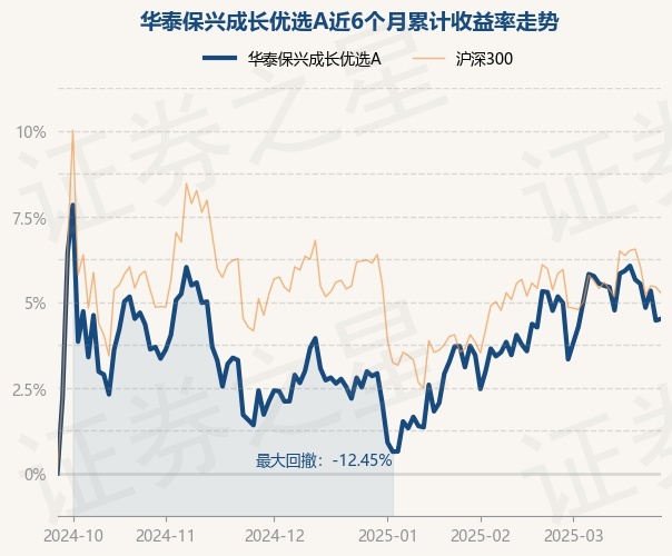证券之星消息,3月26日,华泰保兴成长优选A最新单位净值为1.6497元,累计净值为2.0397元,较前一交易日上涨0.08%。历史数据显示该基金近1个月下跌1.18%,近3个月上涨2.89%,近6个月上涨9.03%,近1年上涨5.87%。该基金近6个月的累计收益率走势如下图: