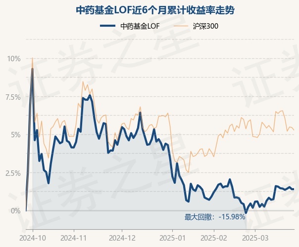 证券之星消息,3月26日,中药基金LOF最新单位净值为1.0941元,累计净值为1.0941元,较前一交易日上涨0.0%。历史数据显示该基金近1个月上涨2.03%,近3个月下跌5.05%,近6个月上涨2.49%,近1年下跌4.85%。该基金近6个月的累计收益率走势如下图:
