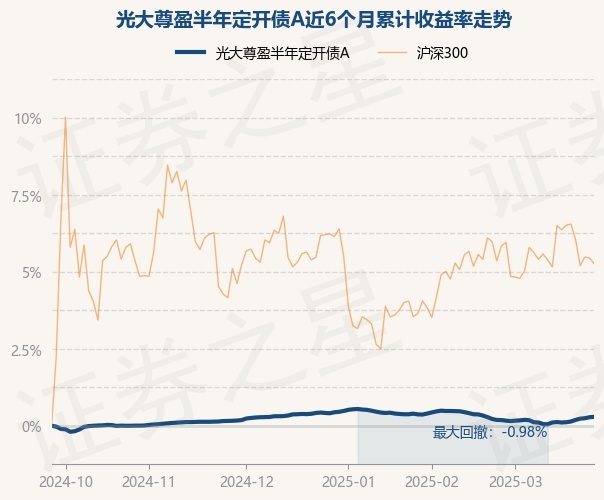 光大尊盈半年定开债A为债券型-混合一级基金,根据最新一期基金季报显示,该基金资产配置:无股票类资产,债券占净值比116.43%,现金占净值比0.91%。