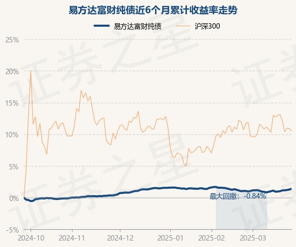 证券之星消息,3月26日,易方达富财纯债最新单位净值为1.0157元,累计净值为1.2191元,较前一交易日上涨0.11%。历史数据显示该基金近1个月上涨0.32%,近3个月下跌0.11%,近6个月上涨1.39%,近1年上涨3.36%。该基金近6个月的累计收益率走势如下图: