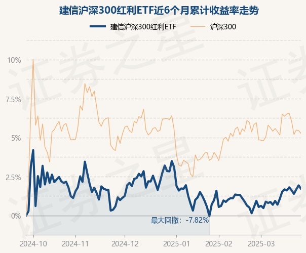 证券之星消息,3月26日,建信沪深300红利ETF最新单位净值为1.4674元,累计净值为1.4674元,较前一交易日下跌0.42%。历史数据显示该基金近1个月上涨2.31%,近3个月下跌2.15%,近6个月上涨3.42%,近1年上涨13.32%。该基金近6个月的累计收益率走势如下图: