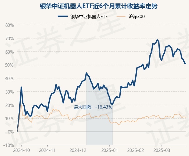 证券之星消息,3月26日,银华中证机器人ETF最新单位净值为1.0072元,累计净值为1.0072元,较前一交易日上涨0.0%。历史数据显示该基金近1个月下跌9.53%,近3个月上涨13.21%,近6个月上涨52.56%,近1年上涨28.53%。该基金近6个月的累计收益率走势如下图: