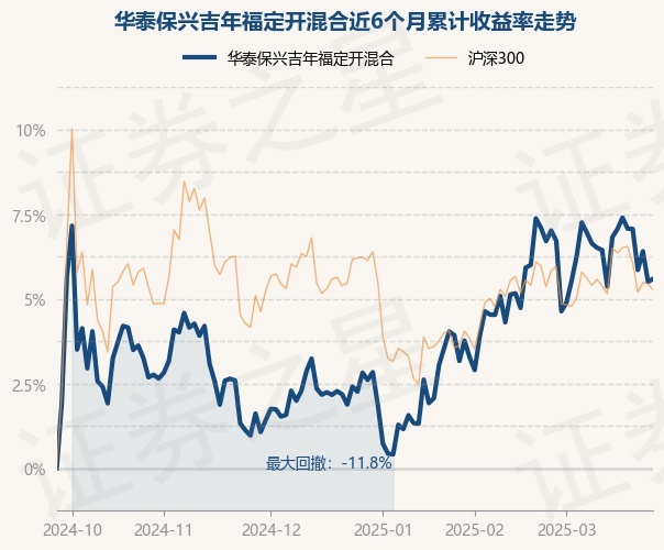 证券之星消息,3月26日,华泰保兴吉年福定开混合最新单位净值为1.1809元,累计净值为1.4489元,较前一交易日上涨0.15%。历史数据显示该基金近1个月下跌2.5%,近3个月上涨5.24%,近6个月上涨11.19%,近1年上涨7.48%。该基金近6个月的累计收益率走势如下图: