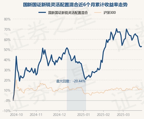 证券之星消息,3月26日,国新国证新锐灵活配置混合最新单位净值为1.412元,累计净值为1.412元,较前一交易日上涨0.28%。历史数据显示该基金近1个月下跌8.55%,近3个月上涨10.92%,近6个月上涨52.98%,近1年上涨22.57%。该基金近6个月的累计收益率走势如下图:
