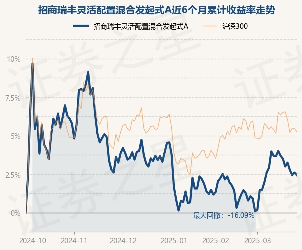 证券之星消息,3月26日,招商瑞丰灵活配置混合发起式A最新单位净值为1.873元,累计净值为2.086元,较前一交易日下跌0.32%。历史数据显示该基金近1个月上涨2.69%,近3个月下跌2.75%,近6个月上涨4.87%,近1年上涨4.23%。该基金近6个月的累计收益率走势如下图: