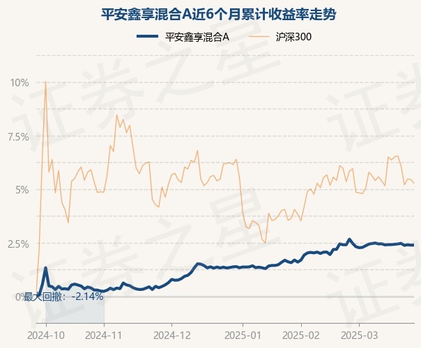 证券之星消息,3月26日,平安鑫享混合A最新单位净值为1.639元,累计净值为1.639元,较前一交易日上涨0.01%。历史数据显示该基金近1个月下跌0.53%,近3个月上涨2.04%,近6个月上涨4.78%,近1年上涨5.67%。该基金近6个月的累计收益率走势如下图: