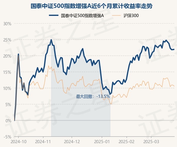 证券之星消息,3月26日,国泰中证500指数增强A最新单位净值为1.1326元,累计净值为1.1964元,较前一交易日上涨0.05%。历史数据显示该基金近1个月下跌0.56%,近3个月上涨3.56%,近6个月上涨21.94%,近1年上涨15.96%。该基金近6个月的累计收益率走势如下图:
