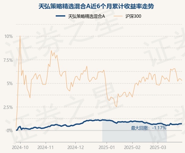 证券之星消息,3月26日,天弘策略精选混合A最新单位净值为0.9981元,累计净值为0.9981元,较前一交易日上涨0.01%。历史数据显示该基金近1个月上涨0.07%,近3个月下跌0.69%,近6个月上涨1.39%,近1年上涨6.71%。该基金近6个月的累计收益率走势如下图: