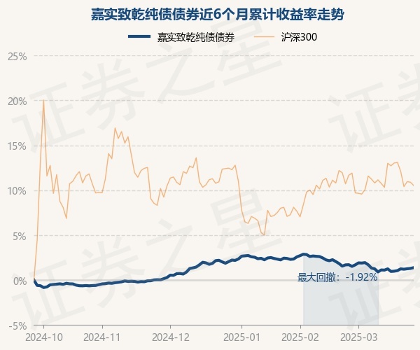 证券之星消息,3月26日,嘉实致乾纯债债券最新单位净值为1.0469元,累计净值为1.1146元,较前一交易日上涨0.09%。历史数据显示该基金近1个月下跌0.32%,近3个月下跌0.65%,近6个月上涨1.39%,近1年上涨4.5%。该基金近6个月的累计收益率走势如下图: