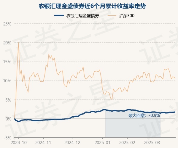 证券之星消息,3月26日,农银汇理金盛债券最新单位净值为1.0162元,累计净值为1.1512元,较前一交易日上涨0.06%。历史数据显示该基金近1个月上涨0.09%,近3个月下跌0.05%,近6个月上涨1.7%,近1年上涨4.55%。该基金近6个月的累计收益率走势如下图: