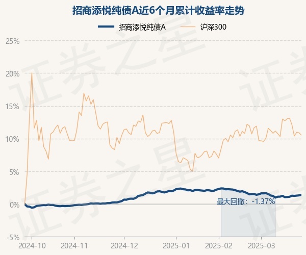 证券之星消息,3月26日,招商添悦纯债A最新单位净值为1.0492元,累计净值为1.251元,较前一交易日上涨0.07%。历史数据显示该基金近1个月下跌0.14%,近3个月下跌0.46%,近6个月上涨1.4%,近1年上涨3.71%。该基金近6个月的累计收益率走势如下图: