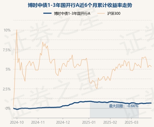 证券之星消息,3月26日,博时中债1-3年国开行A最新单位净值为1.05元,累计净值为1.1802元,较前一交易日下跌0.01%。历史数据显示该基金近1个月上涨0.05%,近3个月下跌0.32%,近6个月上涨1.29%,近1年上涨3.11%。该基金近6个月的累计收益率走势如下图: