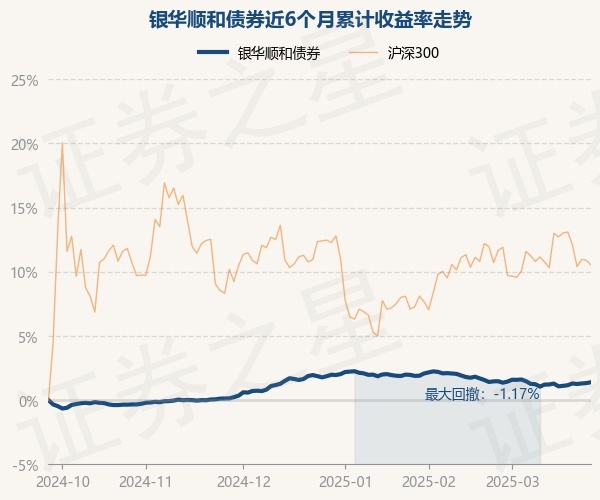 证券之星消息,3月26日,银华顺和债券最新单位净值为1.0431元,累计净值为1.0611元,较前一交易日上涨0.07%。历史数据显示该基金近1个月下跌0.08%,近3个月下跌0.46%,近6个月上涨1.39%,近1年上涨3.92%。该基金近6个月的累计收益率走势如下图: