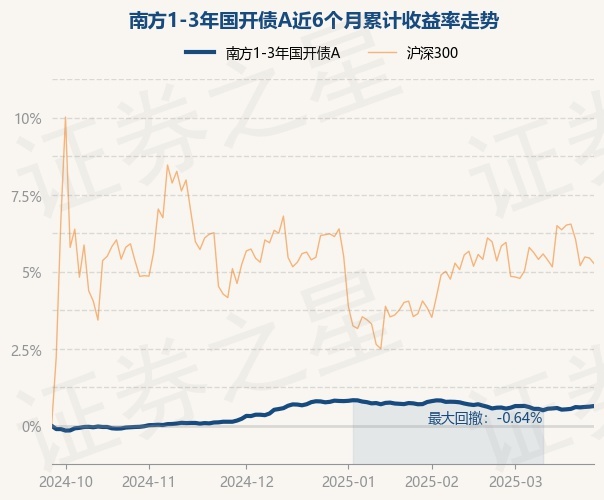 证券之星消息,3月26日,南方1-3年国开债A最新单位净值为1.0433元,累计净值为1.2033元,较前一交易日上涨0.04%。历史数据显示该基金近1个月上涨0.1%,近3个月下跌0.27%,近6个月上涨1.28%,近1年上涨3.28%。该基金近6个月的累计收益率走势如下图: