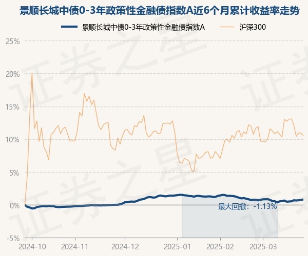 证券之星消息,3月26日,景顺长城中债0-3年政策性金融债指数A最新单位净值为1.0438元,累计净值为1.0632元,较前一交易日上涨0.08%。历史数据显示该基金近1个月上涨2.03%,近3个月上涨1.47%,近6个月上涨2.83%,近1年上涨5.48%。该基金近6个月的累计收益率走势如下图: