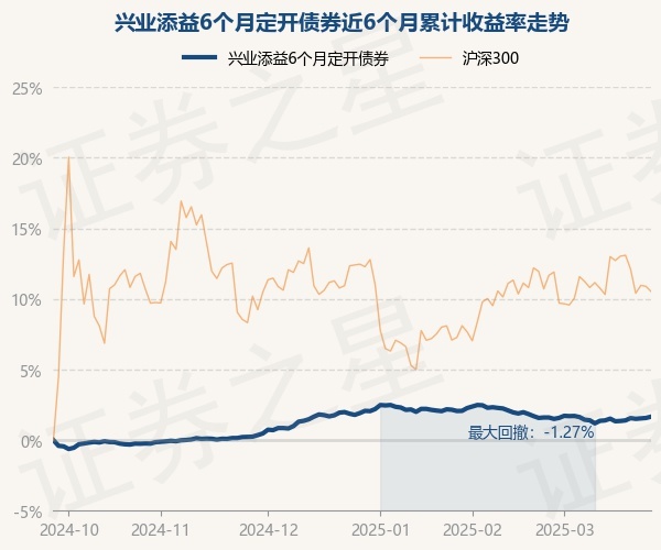证券之星消息,3月26日,兴业添益6个月定开债券最新单位净值为1.0038元,累计净值为1.0928元,较前一交易日上涨0.09%。历史数据显示该基金近1个月上涨0.06%,近3个月下跌0.25%,近6个月上涨1.66%,近1年上涨4.7%。该基金近6个月的累计收益率走势如下图: