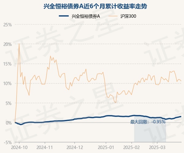 证券之星消息,3月26日,兴全恒裕债券A最新单位净值为1.164元,累计净值为1.22元,较前一交易日上涨0.05%。历史数据显示该基金近1个月上涨0.26%,近3个月上涨0.19%,近6个月上涨1.5%,近1年上涨3.21%。该基金近6个月的累计收益率走势如下图: