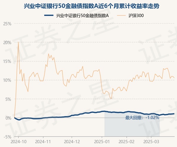 证券之星消息,3月26日,兴业中证银行50金融债指数A最新单位净值为1.0882元,累计净值为1.1872元,较前一交易日上涨0.05%。历史数据显示该基金近1个月上涨2.39%,近3个月上涨1.97%,近6个月上涨3.36%,近1年上涨5.86%。该基金近6个月的累计收益率走势如下图: