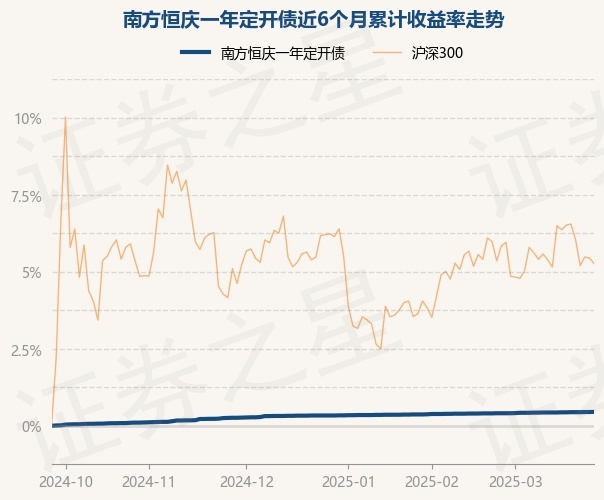 证券之星消息,3月26日,南方恒庆一年定开债最新单位净值为1.0284元,累计净值为1.1111元,较前一交易日上涨0.01%。历史数据显示该基金近1个月上涨0.09%,近3个月上涨0.23%,近6个月上涨0.9%,近1年上涨2.06%。该基金近6个月的累计收益率走势如下图: