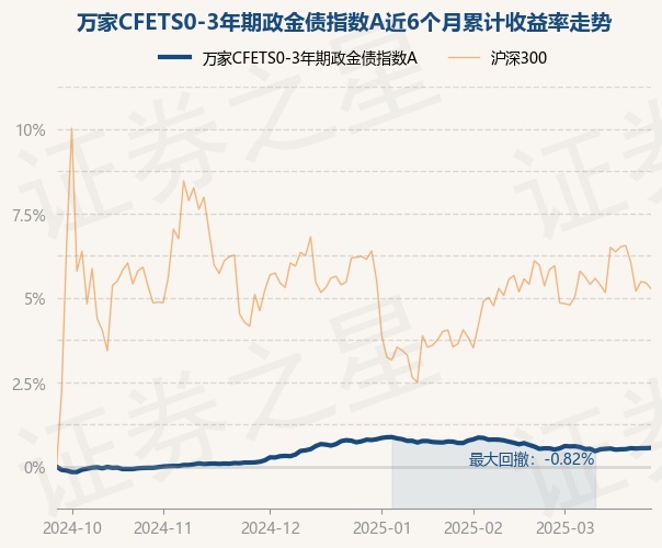 证券之星消息,3月26日,万家CFETS0-3年期政金债指数A最新单位净值为1.0029元,累计净值为1.0682元,较前一交易日上涨0.02%。历史数据显示该基金近1个月上涨0.03%,近3个月下跌0.38%,近6个月上涨1.11%,近1年上涨5.58%。该基金近6个月的累计收益率走势如下图: