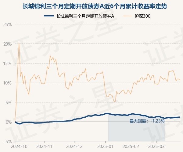 证券之星消息,3月26日,长城锦利三个月定期开放债券A最新单位净值为1.0523元,累计净值为1.0523元,较前一交易日上涨0.03%。历史数据显示该基金近1个月下跌0.01%,近3个月下跌0.44%,近6个月上涨1.16%,近1年上涨3.53%。该基金近6个月的累计收益率走势如下图: