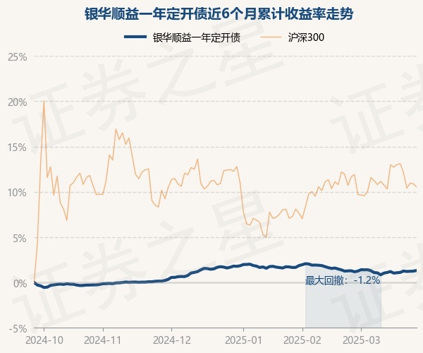 证券之星消息,3月26日,银华顺益一年定开债最新单位净值为1.0174元,累计净值为1.1074元,较前一交易日上涨0.07%。历史数据显示该基金近1个月上涨0.03%,近3个月下跌0.36%,近6个月上涨1.32%,近1年上涨3.5%。该基金近6个月的累计收益率走势如下图: