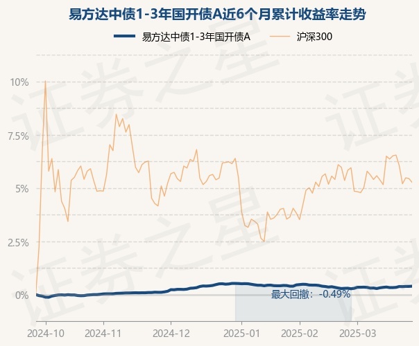 证券之星消息,3月26日,易方达中债1-3年国开债A最新单位净值为1.007元,累计净值为1.1847元,较前一交易日上涨0.02%。历史数据显示该基金近1个月上涨0.19%,近3个月下跌0.21%,近6个月上涨0.79%,近1年上涨2.56%。该基金近6个月的累计收益率走势如下图: