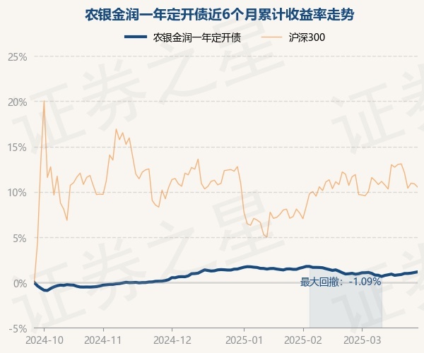 证券之星消息,3月26日,农银金润一年定开债最新单位净值为1.0386元,累计净值为1.1626元,较前一交易日上涨0.07%。历史数据显示该基金近1个月上涨0.15%,近3个月下跌0.2%,近6个月上涨1.17%,近1年上涨3.99%。该基金近6个月的累计收益率走势如下图:
