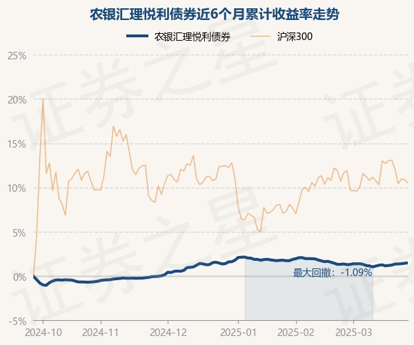 证券之星消息,3月26日,农银汇理悦利债券最新单位净值为1.0189元,累计净值为1.1259元,较前一交易日上涨0.04%。历史数据显示该基金近1个月上涨0.12%,近3个月上涨0.08%,近6个月上涨1.49%,近1年上涨4.22%。该基金近6个月的累计收益率走势如下图: