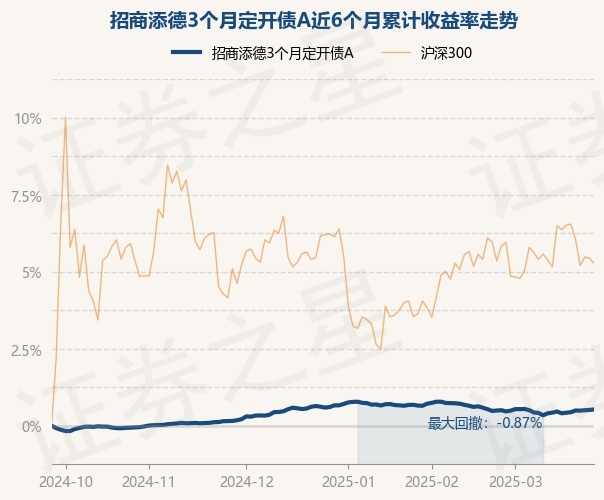 证券之星消息,3月26日,招商添德3个月定开债A最新单位净值为1.1131元,累计净值为1.3327元,较前一交易日上涨0.04%。历史数据显示该基金近1个月上涨0.05%,近3个月下跌0.15%,近6个月上涨1.06%,近1年上涨2.84%。该基金近6个月的累计收益率走势如下图: