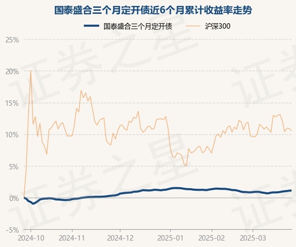 证券之星消息,3月26日,国泰盛合三个月定开债最新单位净值为1.1299元,累计净值为1.1798元,较前一交易日上涨0.03%。历史数据显示该基金近1个月上涨0.24%,近3个月下跌0.04%,近6个月上涨1.13%,近1年上涨3.23%。该基金近6个月的累计收益率走势如下图:
