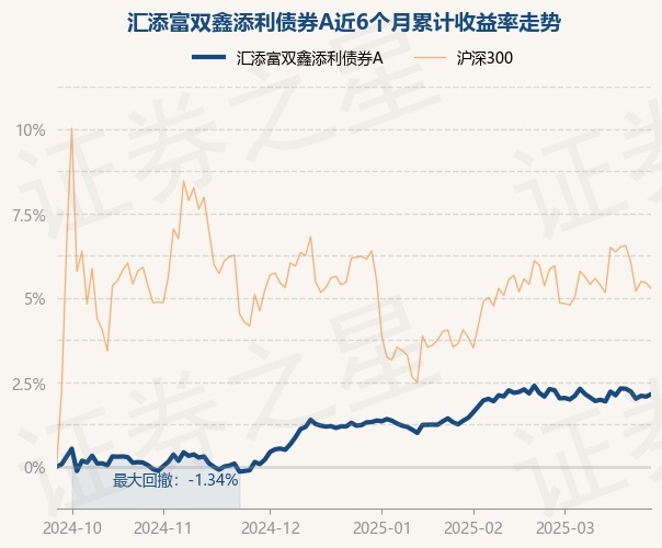 证券之星消息,3月26日,汇添富双鑫添利债券A最新单位净值为1.1684元,累计净值为1.4614元,较前一交易日上涨0.13%。历史数据显示该基金近1个月下跌0.3%,近3个月上涨1.78%,近6个月上涨4.28%,近1年上涨7.44%。该基金近6个月的累计收益率走势如下图: