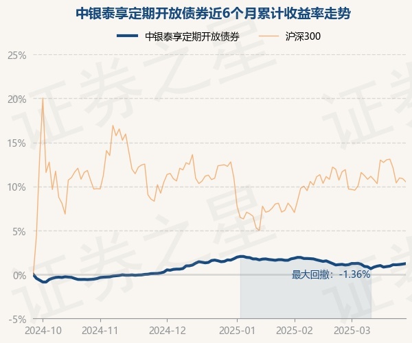 证券之星消息,3月26日,中银泰享定期开放债券最新单位净值为1.048元,累计净值为1.2753元,较前一交易日上涨0.06%。历史数据显示该基金近1个月上涨0.09%,近3个月下跌0.25%,近6个月上涨1.24%,近1年上涨3.85%。该基金近6个月的累计收益率走势如下图:
