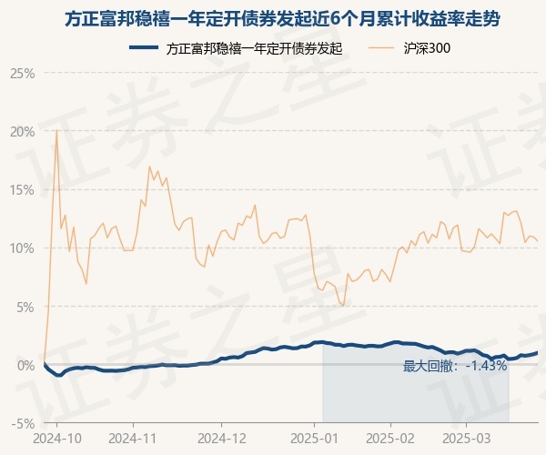 证券之星消息,3月26日,方正富邦稳禧一年定开债券发起最新单位净值为1.0247元,累计净值为1.0689元,较前一交易日上涨0.12%。历史数据显示该基金近1个月下跌0.05%,近3个月下跌0.4%,近6个月上涨0.97%,近1年上涨3.51%。该基金近6个月的累计收益率走势如下图: