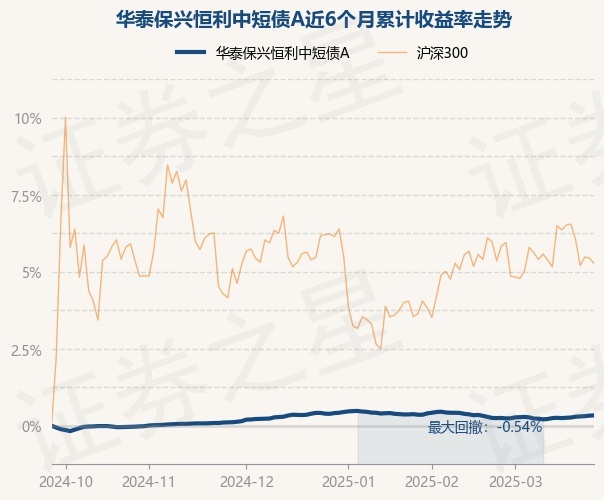 证券之星消息,3月26日,华泰保兴恒利中短债A最新单位净值为1.0159元,累计净值为1.0959元,较前一交易日上涨0.02%。历史数据显示该基金近1个月上涨0.17%,近3个月下跌0.1%,近6个月上涨0.68%,近1年上涨2.33%。该基金近6个月的累计收益率走势如下图:
