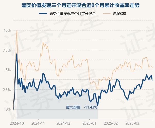 证券之星消息,3月26日,嘉实价值发现三个月定开混合最新单位净值为0.9937元,累计净值为1.0916元,较前一交易日下跌1.21%。历史数据显示该基金近1个月上涨3.81%,近3个月上涨2.54%,近6个月上涨7.18%,近1年上涨14.47%。该基金近6个月的累计收益率走势如下图: