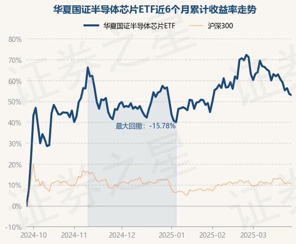 证券之星消息,3月26日,华夏国证半导体芯片ETF最新单位净值为1.2463元,累计净值为1.2463元,较前一交易日下跌0.38%。历史数据显示该基金近1个月下跌11.2%,近3个月下跌2.82%,近6个月上涨52.96%,近1年上涨45.34%。该基金近6个月的累计收益率走势如下图: