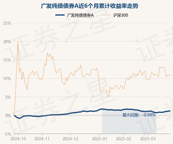 证券之星消息,3月26日,广发纯债债券A最新单位净值为1.2522元,累计净值为1.6995元,较前一交易日上涨0.03%。历史数据显示该基金近1个月上涨0.1%,近3个月上涨0.12%,近6个月上涨1.17%,近1年上涨3.93%。该基金近6个月的累计收益率走势如下图: