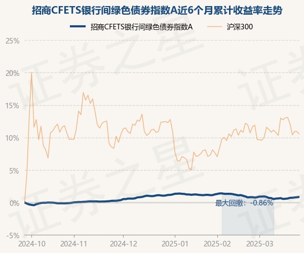 证券之星消息,3月26日,招商CFETS银行间绿色债券指数A最新单位净值为1.0469元,累计净值为1.0469元,较前一交易日上涨0.04%。历史数据显示该基金近1个月上涨0.03%,近3个月下跌0.22%,近6个月上涨0.85%,近1年上涨3.05%。该基金近6个月的累计收益率走势如下图: