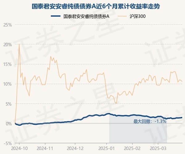 证券之星消息,3月26日,国泰君安安睿纯债债券A最新单位净值为1.0253元,累计净值为1.0603元,较前一交易日上涨0.06%。历史数据显示该基金近1个月下跌0.12%,近3个月下跌0.5%,近6个月上涨1.45%,近1年上涨4.4%。该基金近6个月的累计收益率走势如下图:
