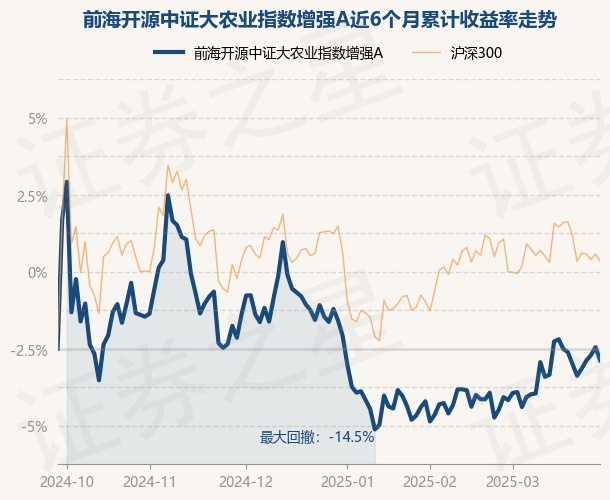 证券之星消息,3月27日,前海开源中证大农业指数增强A最新单位净值为0.9253元,累计净值为0.9253元,较前一交易日上涨0.53%。历史数据显示该基金近1个月上涨3.35%,近3个月下跌2.42%,近6个月上涨0.11%,近1年下跌1.48%。该基金近6个月的累计收益率走势如下图: